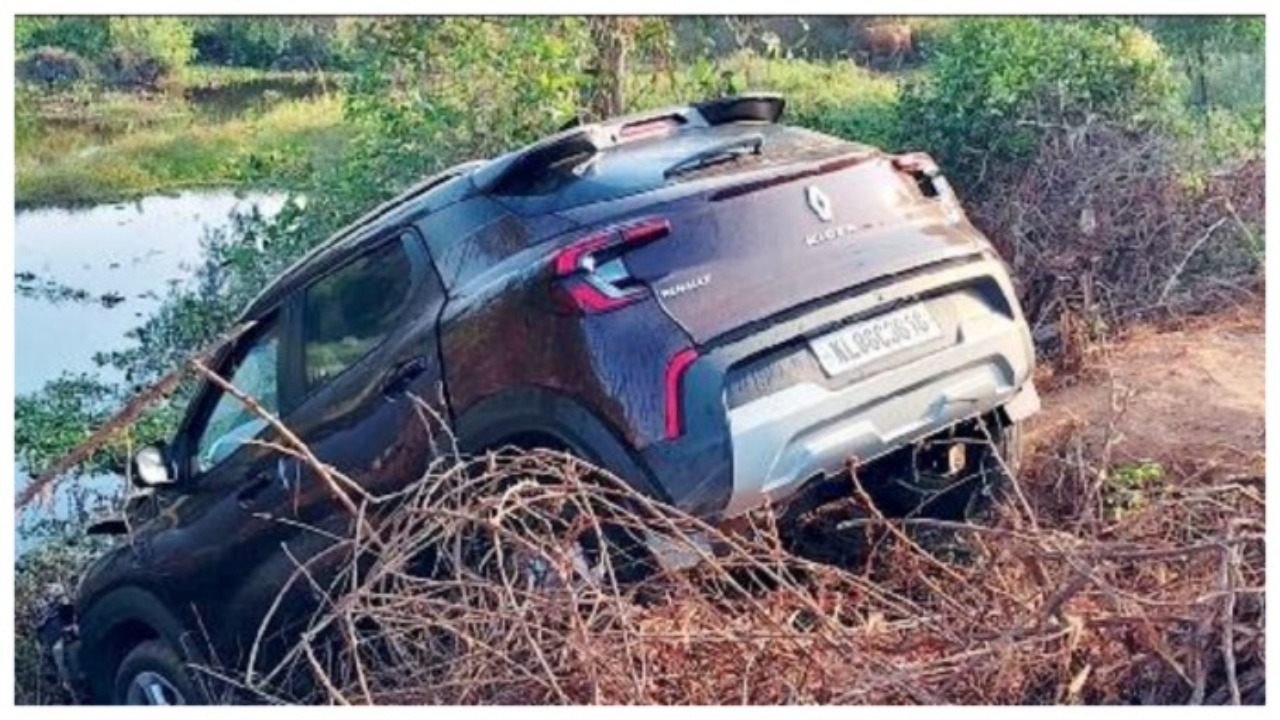 Upon reaching the vicinity of the Upladi stream, the driver is said to have lost control of the vehicle. The car first rammed into an electric pole and then mounted a cement pillar near the edge of the stream. The vehicle came to a halt barely a foot away from the water, averting what could have been a major tragedy.